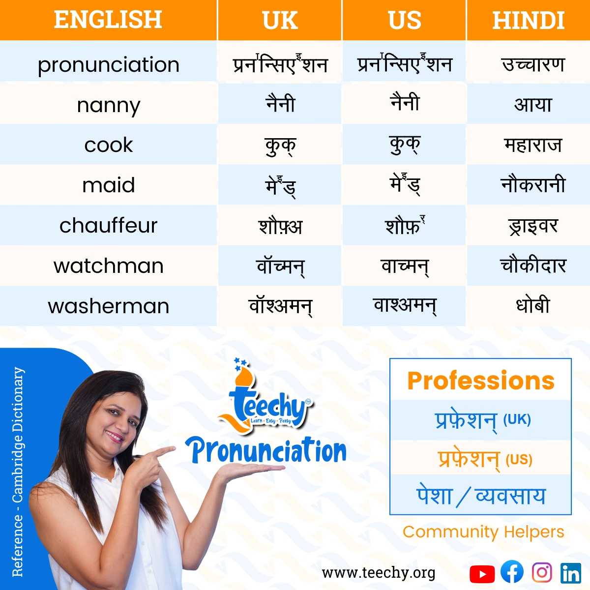Explore our complimentary Pronunciation Resources, revealing thoroughly researched and genuine pronunciations in both UK and US English. Additionally, we've integrated pronunciations in Hindi as well, providing a comprehensive linguistic experience. Enhance your language skills effortlessly with our reliable and diverse resources. Stay tuned for regularly updated content, ensuring you're equipped with the latest and most accurate pronunciations.